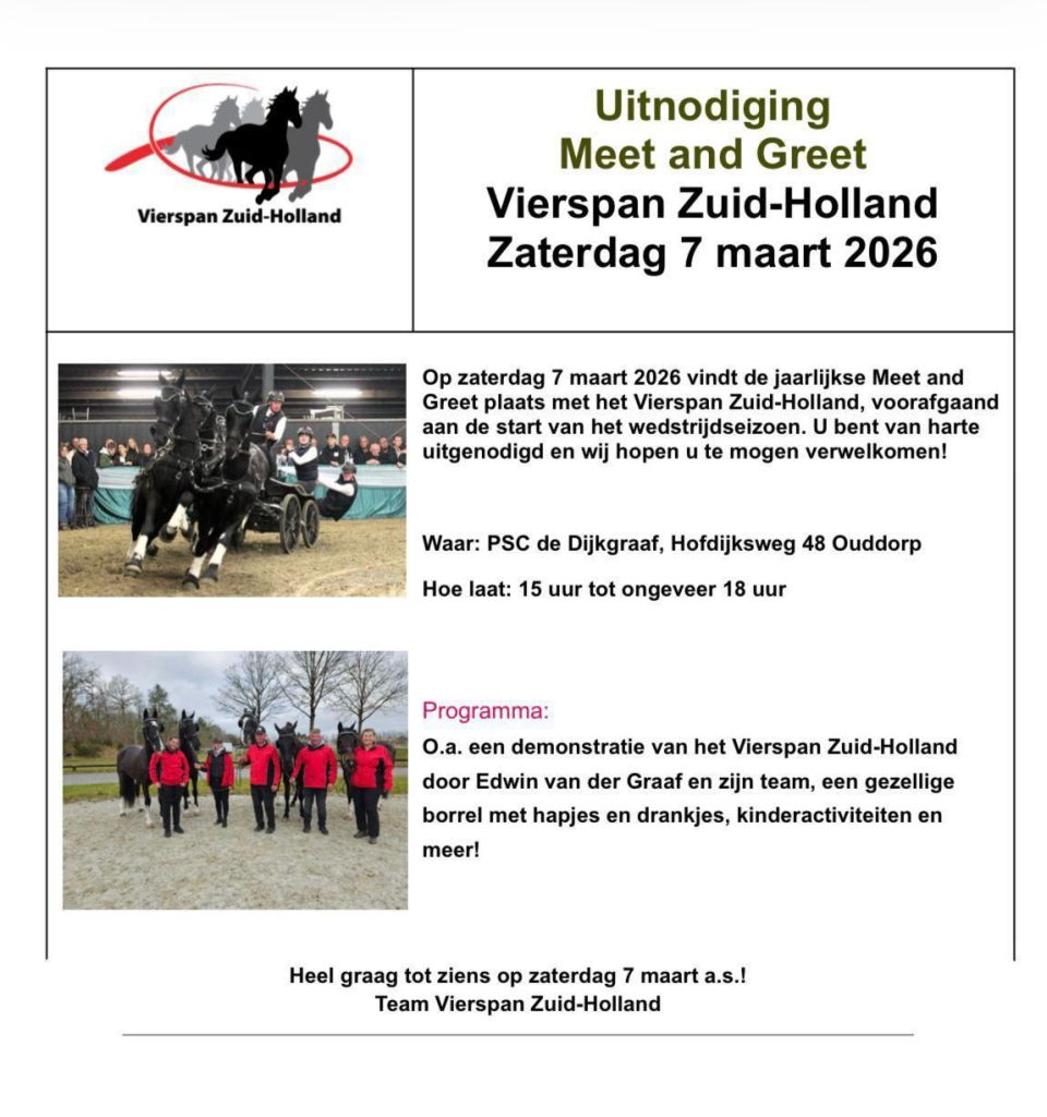 Za 7 maart Meet & Greet Vierspan Zuid-Holland